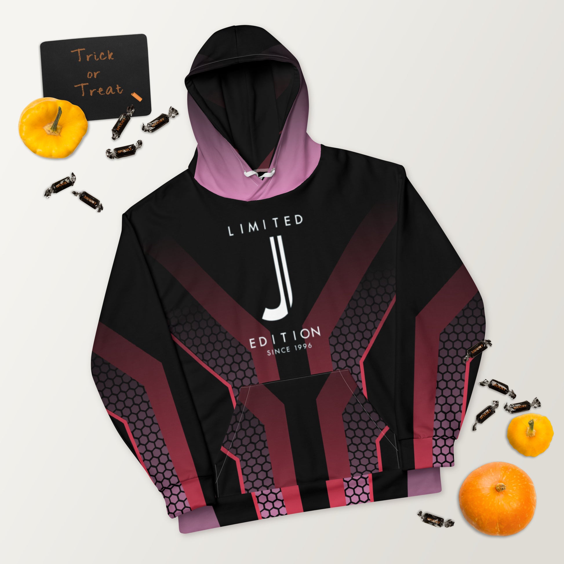 • Double-lined hood with design on both sides