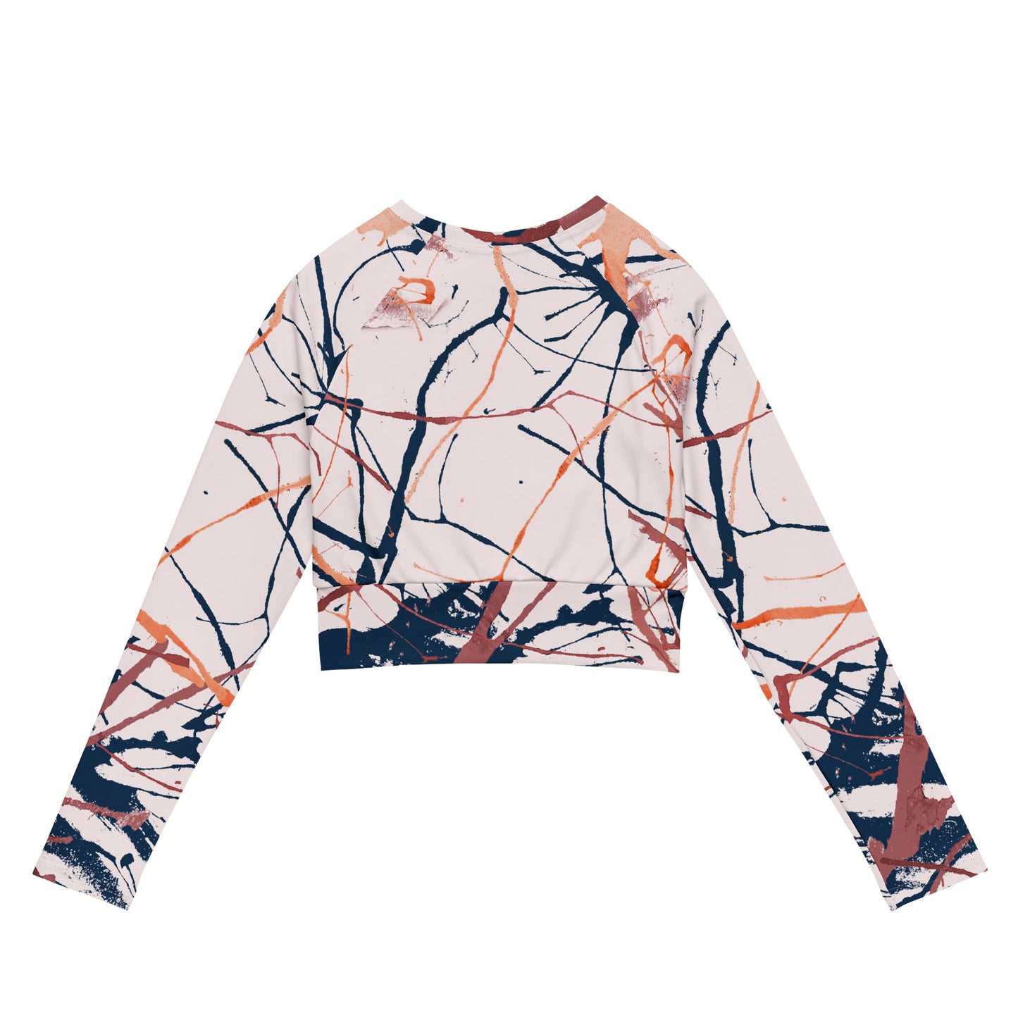 This long-sleeve crop top is made of recycled polyester and elastane, making it an eco-friendly choice for swimming, sports, or athleisure outfits. The crop top has a tear-away care label and a wide, double-layered waistline band for a comfortable fit.
