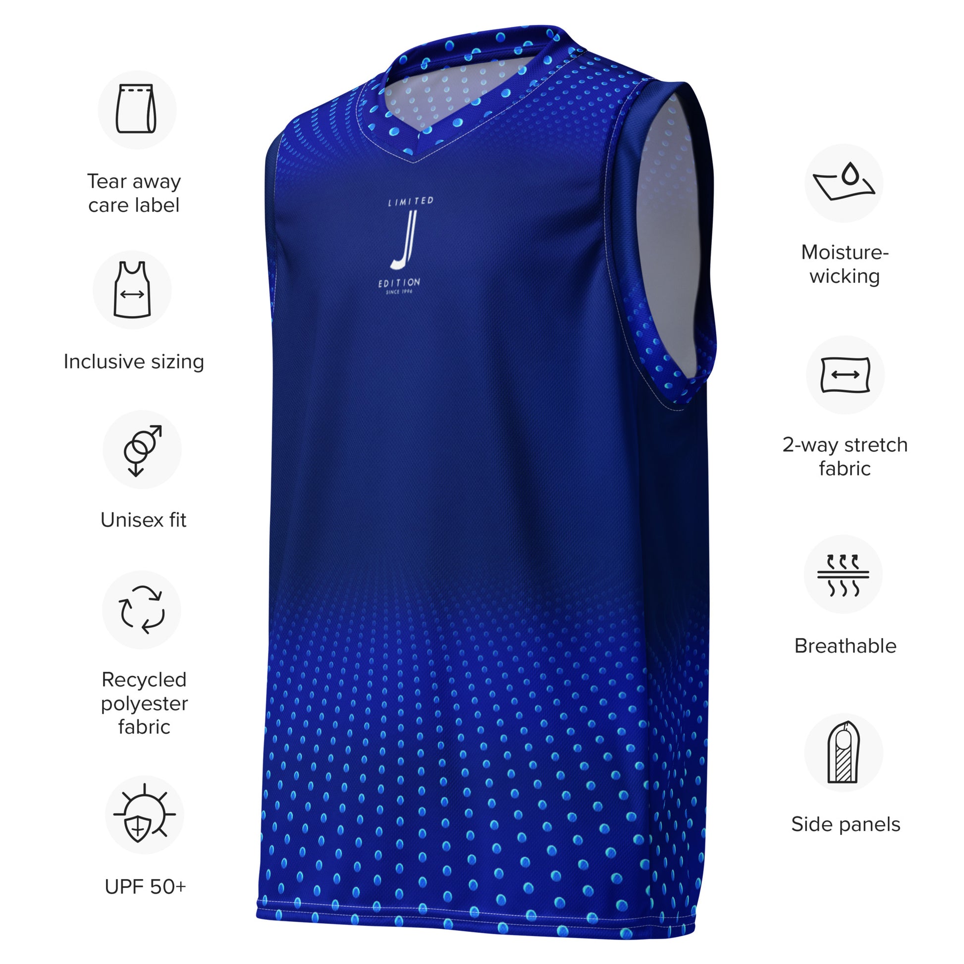 Looking for a basketball jersey that will take your game to the next level? Look no further! Made with recycled polyester fabric, this high-tech jersey is designed to keep you cool and dry even in the heat of competition. Style it as a streetwear piece and turn heads both on and off the court.